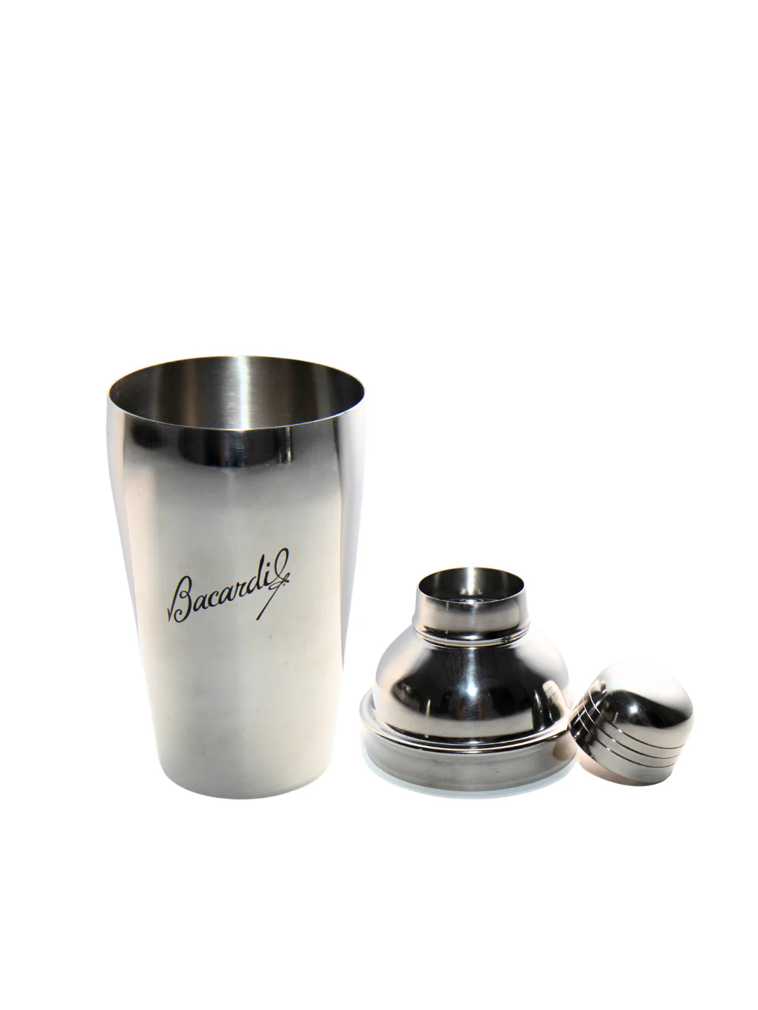 Shake things up with this sleek three-piece cocktail shaker featuring a silver finish, tropical palm leaf print, and the iconic BACARDÍ logo. Made from high-quality stainless steel, it is strong, durable, and easy to use and clean. Perfect for mixing mojitos, daiquiris, and your favorite rum cocktails at home.